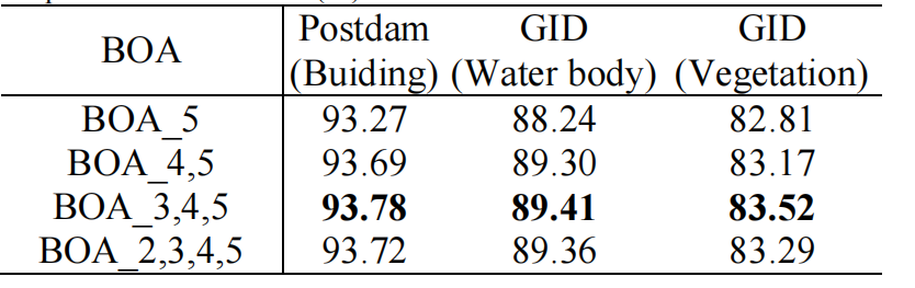 表 5:边缘优化(BOA)应用于不同尺度特征图的平均交并比(mIoU)对比(单位:%)