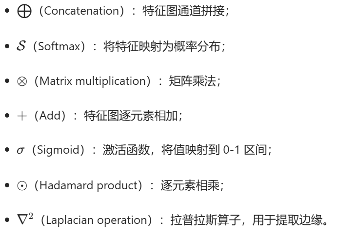 - 边缘损失通过Laplacian 操作(∇²,拉普拉斯算子)提取边缘信息,确保分割结果的边缘清晰度。