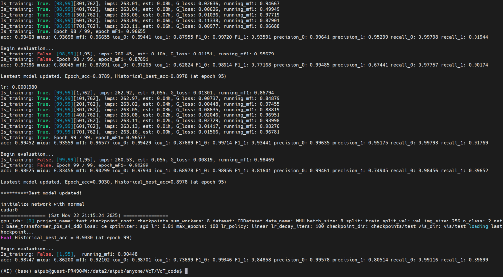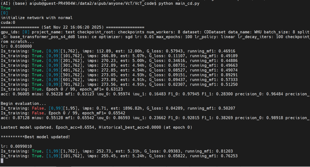 截止2025.11.22 晚上21:36,使用WHU数据集训练VcT完成