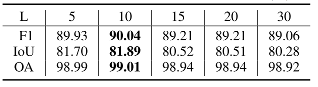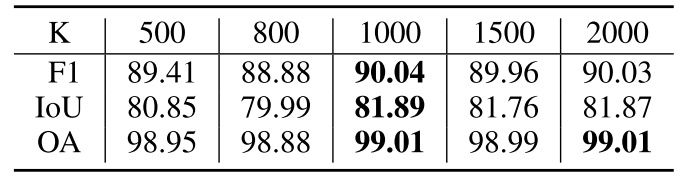 讨论:在从 Top-K 标记筛选到 L 个标记的过程中,一种更简单直观的方法是在获取数值最小的 Top-K 个标记后,直接从中选择 L 个标记。然而,不变区域的面积往往远大于变化区域,这种简单的标记选择策略可能并非最优,因为所选标记可能来自局部区域,而非多样的全局区域。相比之下,我们提出的两阶段选择方法,通过第一阶段的大规模选择和第二阶段的特征聚类,能够实现多样且准确的标记选择。