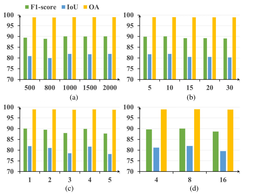 此外,在语义信息辅助方面,可利用一些大规模基础模型 [61],例如 Grounding DINO [74] 和分割一切模型(SAM)[75]。例如,在特定建筑物检测数据集的情况下,可利用预训练大规模模型,通过文本提示对建筑物区域进行分割。这种方法能使模型仅关注感兴趣区域内的变化检测,而忽略树木、车辆等无关的临时变化。然而,需要注意的是,遥感图像与自然图像之间可能存在域差距,这可能导致分割结果不理想。因此,在这方面仍需进一步的实验探索,我们将其作为未来的研究方向。